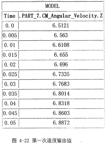 (2)在adams下建立的樣機模型里,將上述速度值設(shè)置到第二輸入中,設(shè)置好后,進行仿真。得到輸出速度圖4-21。