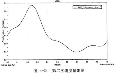 (2)在Adams下建立的樣機模型里,將上述V2(2)速度函數(shù)設(shè)置到第二輸入中,設(shè)置好后,進行仿真。得到輸出速度曲線,如圖4-24所示。