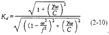 (2)動力放大系數(shù)Kd對振動轉(zhuǎn)矩振幅的影啊,與阻尼系數(shù)γ、頻率比 等有關(guān)。當(dāng)阻尼系數(shù)γ一定時,振動轉(zhuǎn)矩的振幅僅與軸系的固有頻率f有關(guān),即與聯(lián)軸器的剛度C有關(guān):由單自由度系統(tǒng)的簡諧強(qiáng)迫振動相關(guān)理論可知,只有動力放大系數(shù)Kd<1時,彈性聯(lián)軸器才能起到減振作用。由上面的分析可知,Kd隨著扭轉(zhuǎn)剛度C的減小而線性減小。