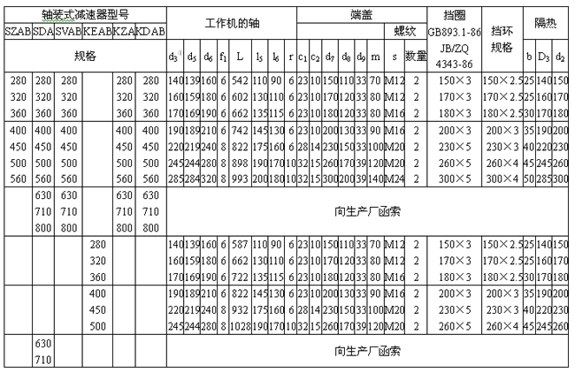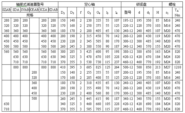 KDNB、KDAB型減速器公稱(chēng)功率和熱功率